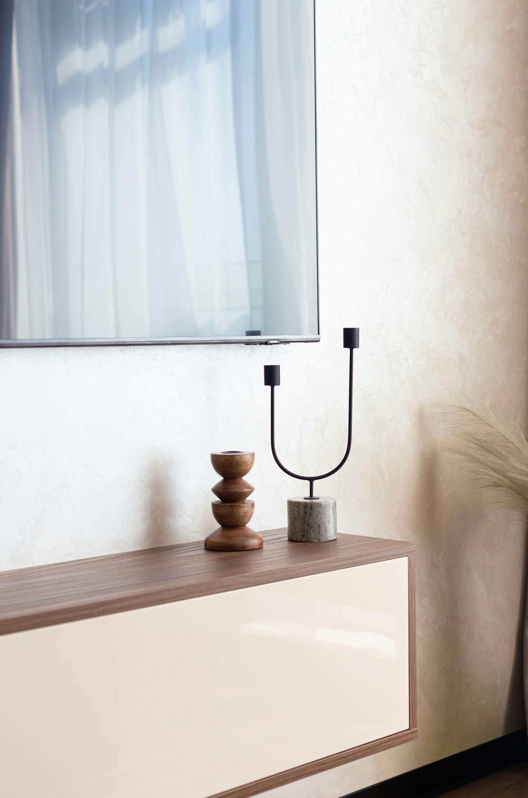 Il n’y a pas de réponse unique. Mais dans un petit salon, le suspendu donne souvent de l’air. Dans une grande pièce, un meuble bas posé peut ancrer l’espace et le rendre plus chaleureux.